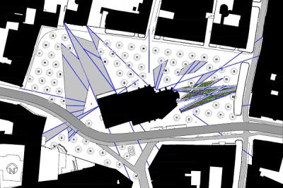 Voor de binnenstad van Utrecht is in 2007 een discussienota opgesteld. Een van de agenda punten is het gebruik van de openbare ruimte. Een van de plannen is om Janskerkhof autovrij te maken. De ontwikkeling’s plan betrekt het universiteitskwartier aan en rond het Janskerkhof met het plein als hart van de campus en horecaondernemers aan Janskerkhof. Deze nota is tot stand gekomen met medewerking van een groot aantal belanghebbenden zoals (horeca)ondernemers, Universiteit Utrecht, Hogeschool van de Kunsten, vertegenwoordiging studenten, de Stichting Studentenhuisvesting Utrecht (SSHU), Stichting Domplein 2013 en leden van de wijkraad binnenstad. In het Collegeprogramma 2010-2014, ‘Groen, Open en Sociaal’ is afgesproken dat de binnenstad waar mogelijk autoluw wordt gemaakt en dat op het Janskerkhof meer ruimte komt voor andere functies in overleg met ondernemers en bewoners. De kwaliteit van de openbare ruimte staat hoog op de agenda van veel gemeenten,ook in Utrecht. Een goede openbare ruimte bepaalt in hoge mate de beleving en leefbaarheid van de stad en verhoogt de waarde van het vastgoed. De kwaliteit van de openbare ruimte hangt af van verschillende aspecten,bijvoorbeeld van bestrating, water en verlichting. Maar ook locatie keuze voor auto’s en fietsen spelen een grote rol. Aangezien er een universiteitskwartier met uitbreiding’s plannen zit ben ik gaan onderzoeken hoe een campus er over de hele wereld er uit ziet en functioneert. Na allerlei campussen over de hele wereld gepostuleerd te hebben ben ik tot de conclusie gekomen dat campussen in het algemeen de zelfde vormen taal en kleur gebruik gebruiken. Het resultaat was dat de kleur groen voornamelijk gebruikt werd als verblijfsruimte bijvoorbeeld gras. Grijs werd vooral gebruikt voor zo recht en direct mogelijke paden die voor als zorgen voor een snelle beweging. Rood om de aandacht te trekken voor ongewone accenten. Geel voornamelijk brede looppaden en pleinen. Door de grotere ruimtes bewegen mensen daar onbewust langzamer. Blauw staat net zo als rood voor ongewone accenten en ook voor waterbassins. Het over deel van de campussen over de hele wereld gebruiken ook de zelfde vormentaal. Namelijk zo recht toe recht aan en zo makkelijk mogelijk te gebruiken. Dit vond ik zo interessant gegeven dat ik van uit de kleuren en de functies ging brainstormen. Hier uit kwamen de woorden: netwerk, omsingelen, stapelen en stroming. Van uit de woorden kwam ik op mijn inspiratie beeld namelijk het kunstwerk van Yasuhiko Hayashi & Yusuke Nakano in het Kyoto Art Center in Kyoto de Paramodel tentoonstelling van 2005. Yasuhiko Hayashi & Yusuke Nakano hebben daar een muur schildering gemaakt dat mij doet denken aan stomend regenwater. Dit bracht mij tot het idee om de stromingen van de studenten uit te beelden in stomend hemelwater. Hiervoor heb ik als eerst alle hemelwaterafvoeren op gezocht op Janskerkhof. En die heb ik vervolgens met een lijn verbonden met de hemelwaterafvoer van de kerk mist er geen gebouw tussen staat. Vervolgens heb ik de lijnen die de stromingen van de studenten kruisen behouden en de rest weg gelaten. De lijnen heb ik in de openbare ruimte aangegeven door lijn goten. Waardoor de studenten meer worden uitgedaagd om bewuster te lopen. Wat op campussen over de wereld juist het tegen over gestelde gebeurt. Doordat er op het gehele plein dichte bomen dak is bevind en niet in de loop routes van de studenten zullen ze toch meer getrokken worden om over de kruisende lijngoten te lopen. Voor het zitmeubel aan de oost zijde van de Janskerk is ook een onderzoek vooraf gegaan. Als eerst heb ik een onderzoek gedaan naar hoe studenten in het algemeen zitten op campussen. Eigenlijk komt het neer op dat studenten op alle manieren die je maar kan bedenken zitten. Verder heb ik gekeken hoe veel ruimte je dan in neemt als je op die manieren zit. Door de verschillende maten heb ik een raster met hoogteverschillen gemaakt die afgesneden worden door de lijngoten. Hierdoor krijgt het zijn unieke vorm. |